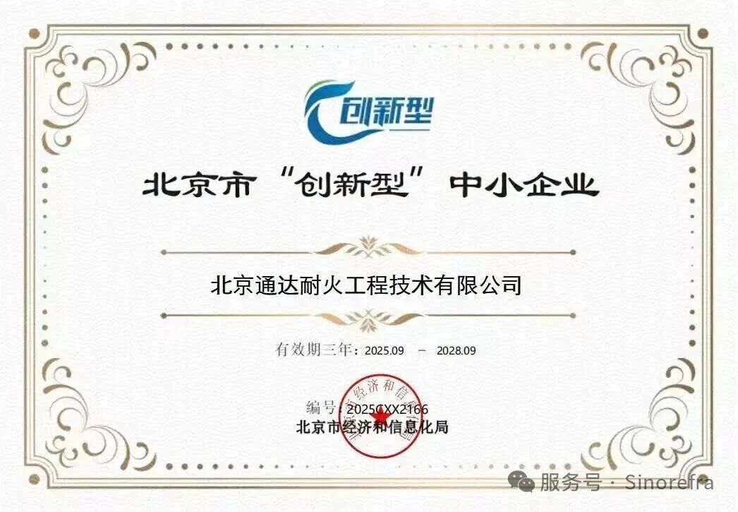 近日,北京通达耐火工程技术有限公司凭借卓越的系统集成服务能力与深厚行业技术积淀,成功通过审核,首次获得北京市“专精特新”中小企业认证。